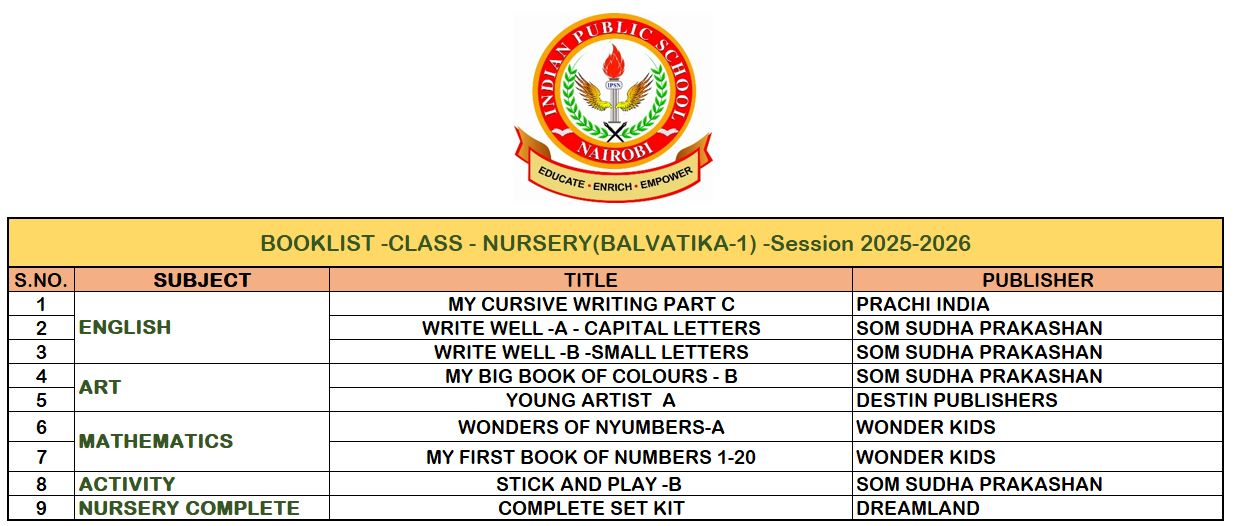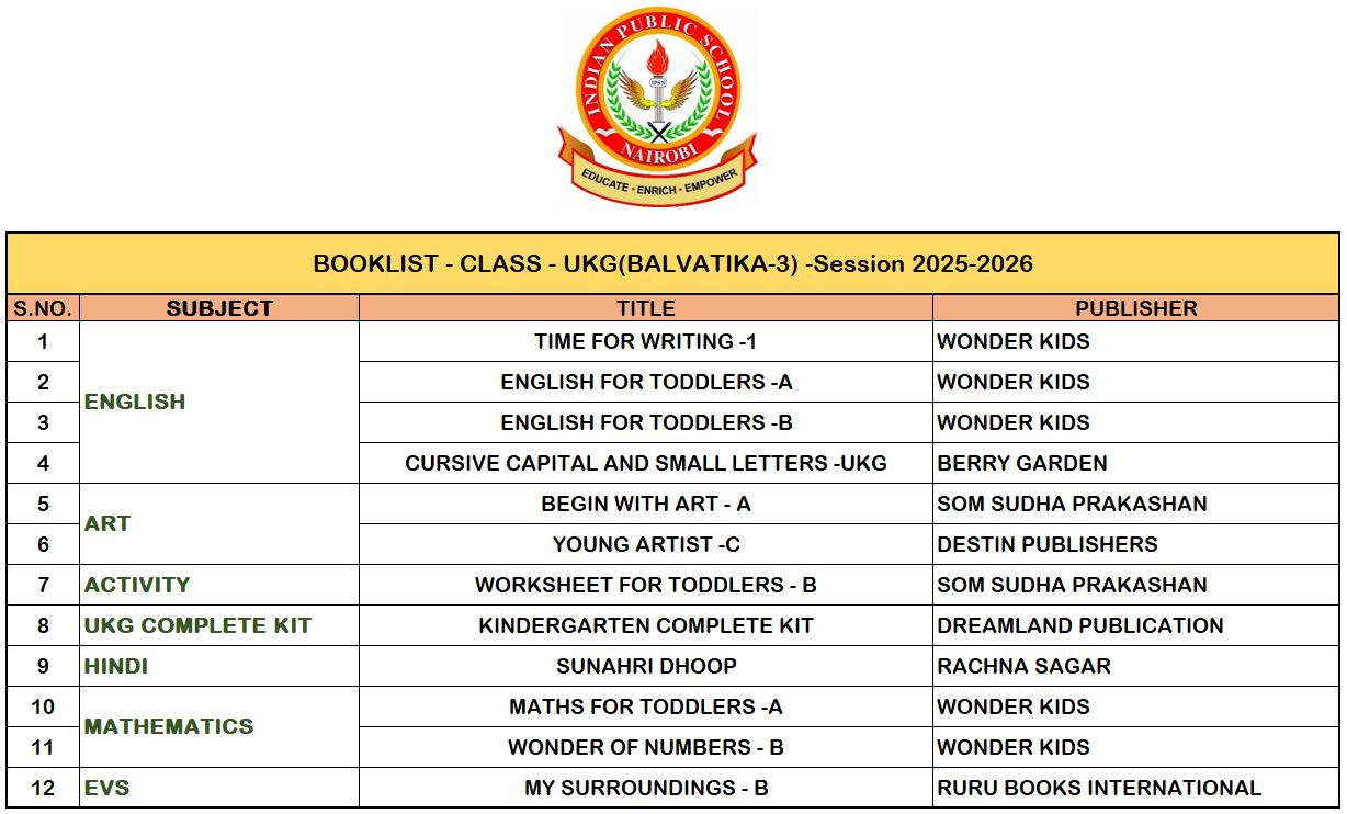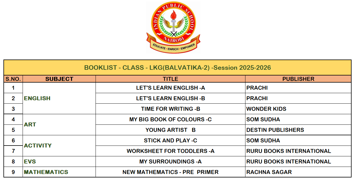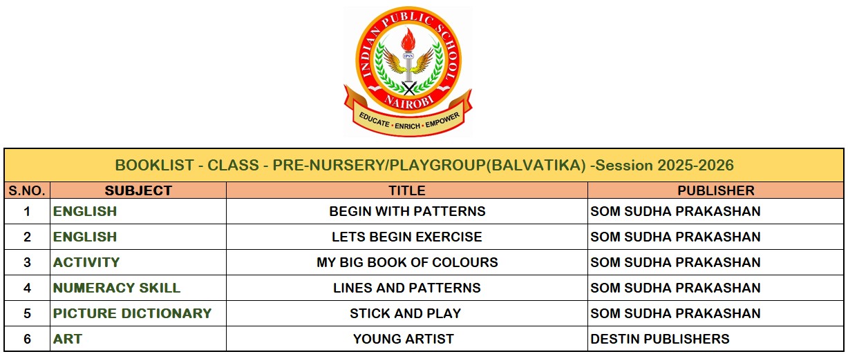BOOKLIST: PRE-NURSERY NURSERY LKG UKG CLASS-I CLASS-II CLASS-III CLASS-IV CLASS-V CLASS-VI CLASS-VII CLASS-VIII CLASS-IX CLASS-X